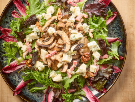 u005cu003culu005cu003e u005cu003cliu005cu003e50 g spekreepjesu005cu003c/liu005cu003e u005cu003cliu005cu003e2 el walnotenolieu005cu003c/liu005cu003e u005cu003cliu005cu003eu005cu0026frac12; el grove mosterdu005cu003c/liu005cu003e u005cu003cliu005cu003e2 el sherryazijnu005cu003c/liu005cu003e u005cu003cliu005cu003eRasp en sap vanu005cu003c/liu005cu003e u005cu003cliu005cu003e1 sinaasappelu005cu003c/liu005cu003e u005cu003cliu005cu003e1 teentje knoflooku005cu003c/liu005cu003e u005cu003cliu005cu003e350 g paddenstoelenmix, in plakjesu005cu003c/liu005cu003e u005cu003cliu005cu003e3 takjes tijm, geritstu005cu003c/liu005cu003e u005cu003cliu005cu003e4 takjes peterselie, fijngesnedenu005cu003c/liu005cu003e u005cu003cliu005cu003e150 g eikenbladslau005cu003c/liu005cu003e u005cu003cliu005cu003e2 stronkjes roodloof, in lengte gehalveerdu005cu003c/liu005cu003e u005cu003cliu005cu003e25 g walnoten, geroosterdu005cu003c/liu005cu003e u005cu003cliu005cu003e6 gewelde pruimen, in reepjesu005cu003c/liu005cu003e u005cu003cliu005cu003e50 g blauwaderkaas, verkruimeldu005cu003c/liu005cu003eu005cu003c/ulu005cu003e