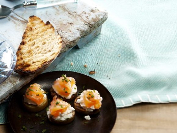 Crostini van zeebonk, tomaat en Hollandse saucijsjes