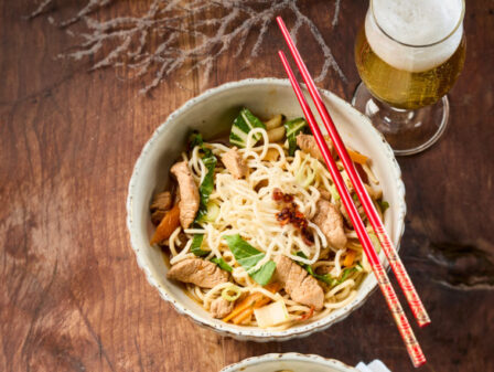 u005cu003culu005cu003e u005cu003cliu005cu003e250 g varkenshaasu005cu003c/liu005cu003e u005cu003cliu005cu003e125 g udon noedelsu005cu003c/liu005cu003e u005cu003cliu005cu003e3 el olijfolieu005cu003c/liu005cu003e u005cu003cliu005cu003e2 el crispy chili olieu005cu003c/liu005cu003e u005cu003cliu005cu003e3 el sojasausu005cu003c/liu005cu003e u005cu003cliu005cu003e1 winterpeenu005cu003c/liu005cu003e u005cu003cliu005cu003e1 sjalotjeu005cu003c/liu005cu003e u005cu003cliu005cu003e1 kleine paksoi, wit en groen in reepjes, gescheiden houdenu005cu003c/liu005cu003e u005cu003cliu005cu003e3 cm verse gember, geschild en gerasptu005cu003c/liu005cu003e u005cu003cliu005cu003e1 teen knoflook, fijngehaktu005cu003c/liu005cu003e u005cu003cliu005cu003e2 lente-uitjes, in ringetjesu005cu003c/liu005cu003e u005cu003cliu005cu003eu005cu0026frac12; blokje runderbouillonu005cu003c/liu005cu003e u005cu003cliu005cu003e2 takjes korianderu005cu003c/liu005cu003e u005cu003cliu005cu003e0,5 l warm wateru005cu003c/liu005cu003e u005cu003cliu005cu003eZoutu005cu003c/liu005cu003eu005cu003c/ulu005cu003e