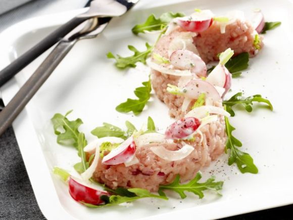 Tataki van tonijn met rettich en sojagembervinaigrette